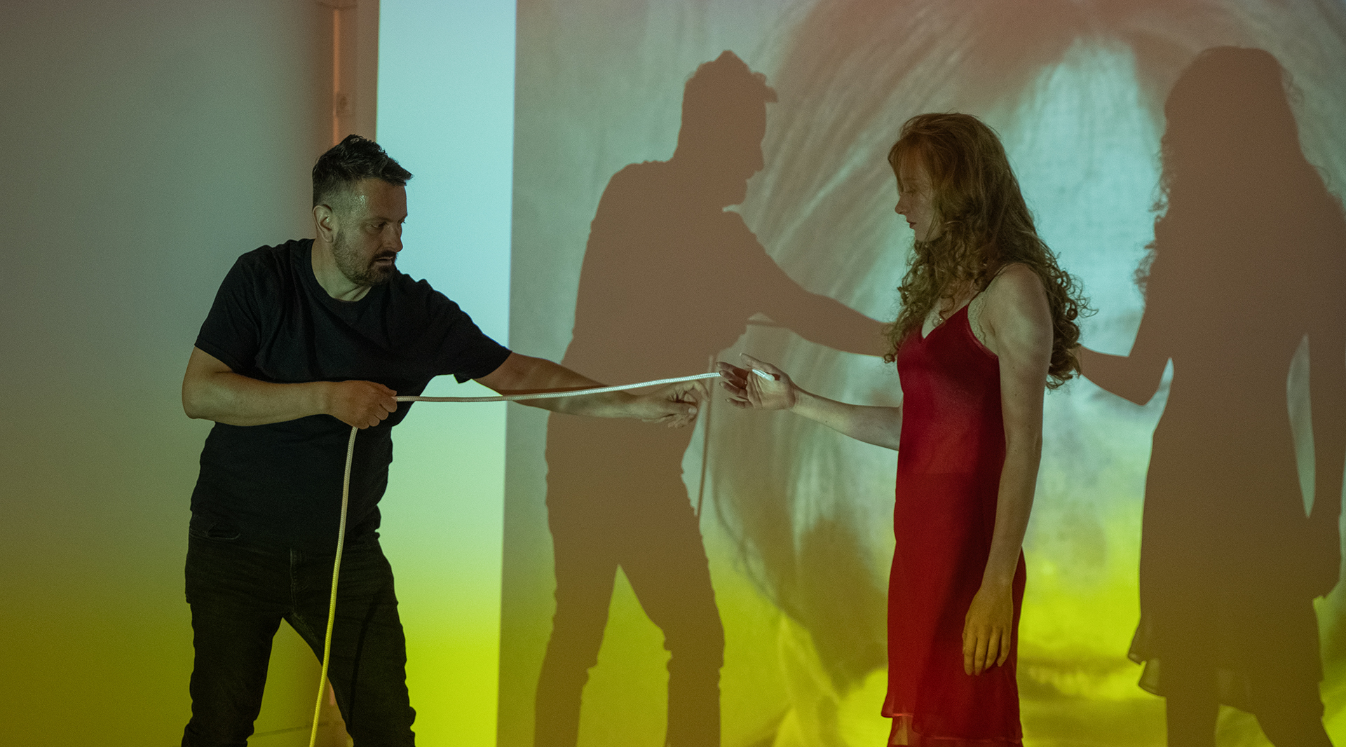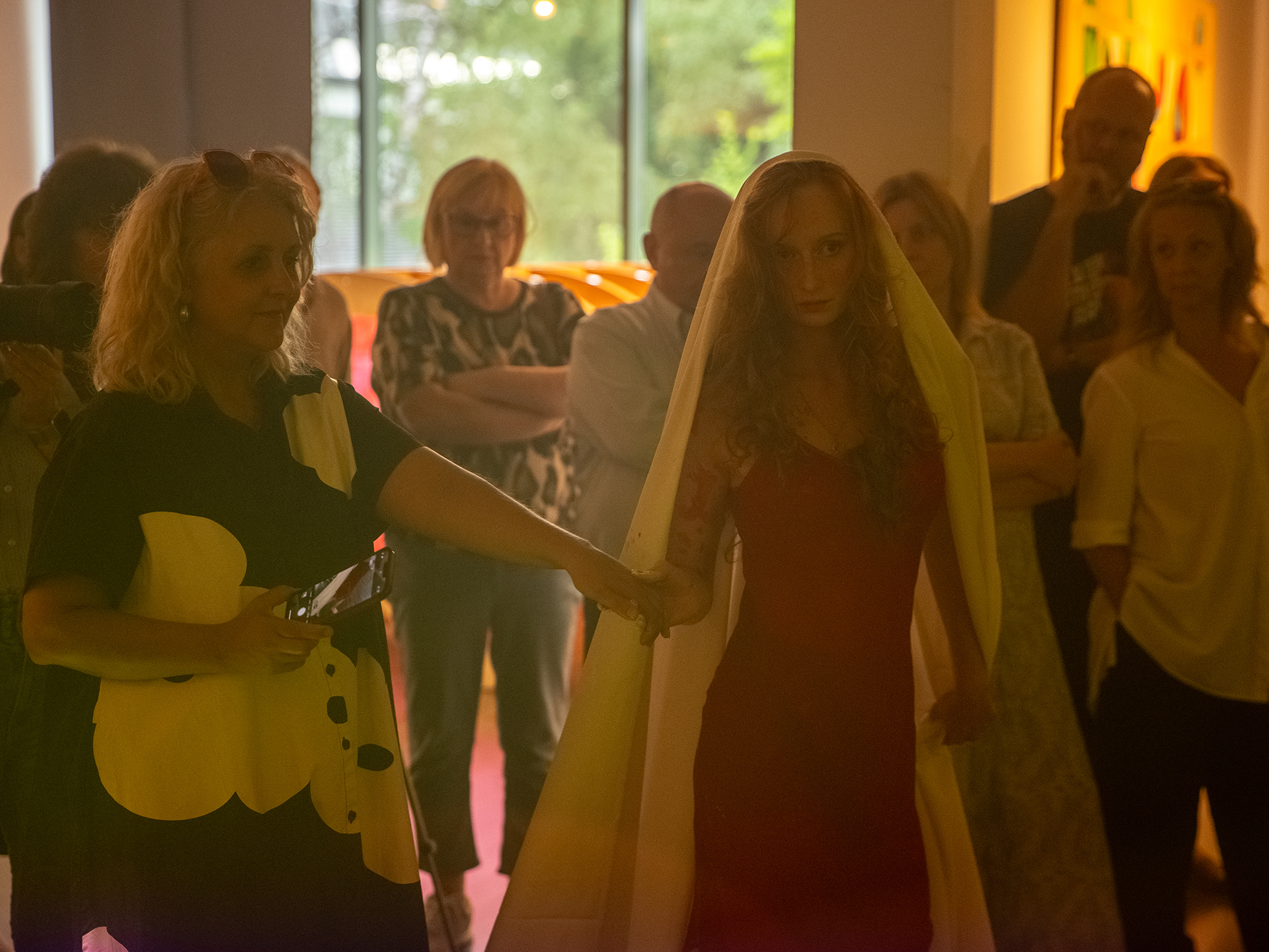 A performansz elsősorban a NŐ-ről szól, csupa nagybetűvel, és mindezt szimbólikus cselekménysorokba és képekbe sűrítve láthatták a kiállítás megnyitóján résztvevők. Egy olyan mindenek felett álló és emblematikus női karakterből indultunk ki, aki még ma is viták tárgyát képezi, és ez nem más volt, mint Mária Magdolna személye. Persze nem egy szakrális szimbólikát felvonultató eseménysort ábrázoltunk, sokkal inkább aktualizáltuk egy olyan NŐ küzdelmét, aki a mai társadalmi konvenciókkal is szembe kerül és megpróbál megszabadulni kötelékeitől és megvalósítani önmagát abban a világban, ahol még mindig bizonyítania kell saját identitását. Az élő képek három szín köré csoportosultak: a fekete, a vörös és a fehér. A performansz több médiumot is összevont: az élő cselekménysor egy videó-vetített narratívával párosult és mindezt keretbe fogta egy olyan hang háttér, ami tudatosan erősítette a látottak megélését. A mester és tanítvány kapcsolat gondolata talán a performansz záró részében bontakozik ki, ahol a nézők tömegéből felkért nők közösen vonszolják ki az elterült férfit, ezzel szimbolizálva, hogy a tanítvány felülmúlhatja mesterét és tovább folytatódik a megkezdett változás, ami a kiállítás alapgondolata is egyben.