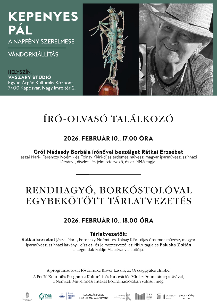 Kaposvárra érkezik Kepenyes Pál Kossuth-díjas, világhírű szobrászművész „A Napfény szerelmese” című vándorkiállítása, amely február 20-ig várja az érdeklődőket a Vaszary Stúdióban.
