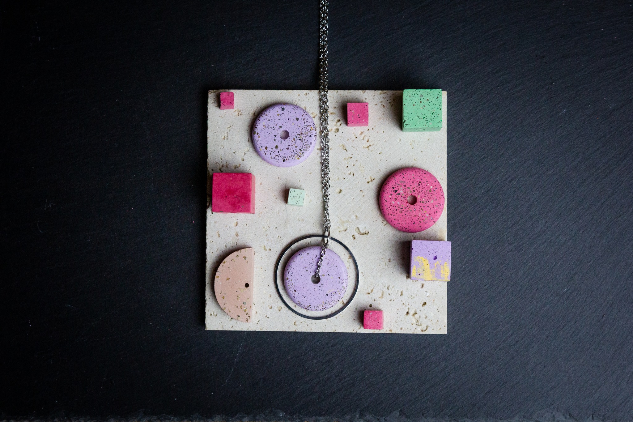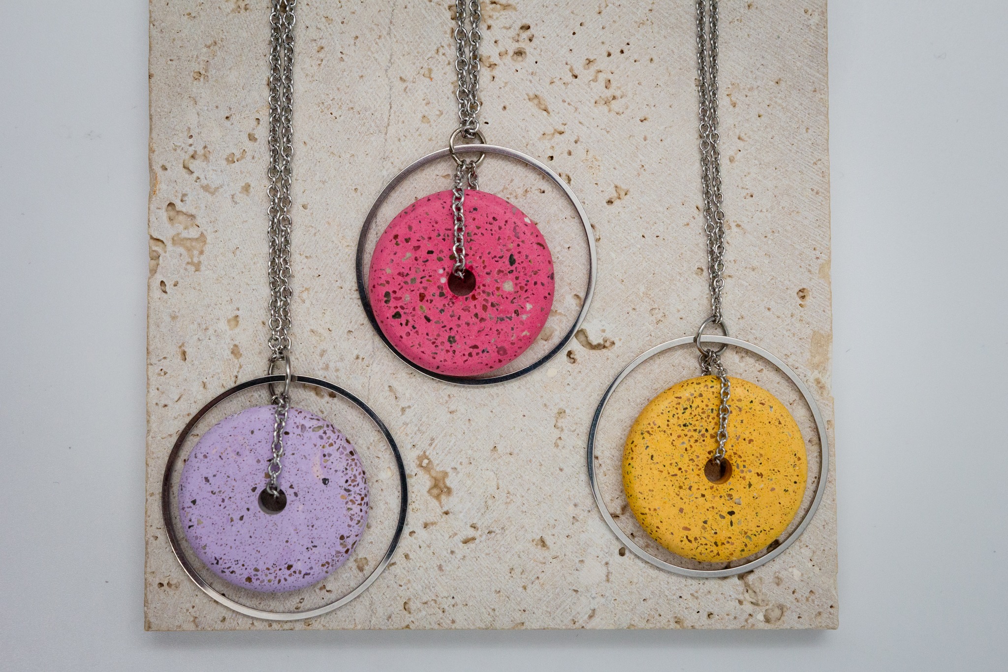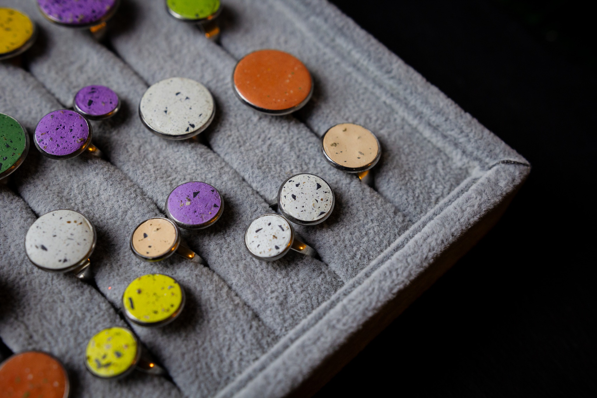 A Pietra ékszereket a leginkább a színek és az egyedi textúrák jellemzik. A termékek minden darabja egyedi és megismételhetetlen, hiszen készítésük során a tervezés mellett szerepet kap a véletlenszerűség is, ami még izgalmasabbá teszi a végeredményt. Annak ellenére, hogy a betonról egyből valami nehéz és szürke jut eszünkbe, Petra ékszerei kifejezetten a vidámságot tükrözik, fiatalosak és vagányak.